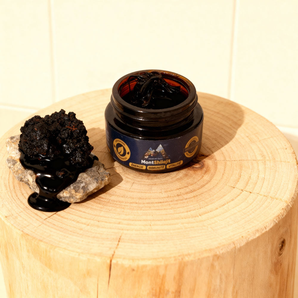 Découvrez la résine MontShilajit, une substance naturelle originaire de l'Himalaya, récoltée et séchée selon des méthodes traditionnelles pour préserver ses propriétés.